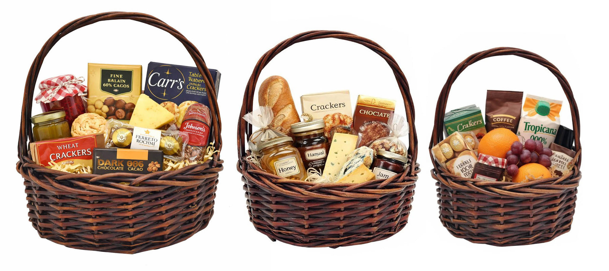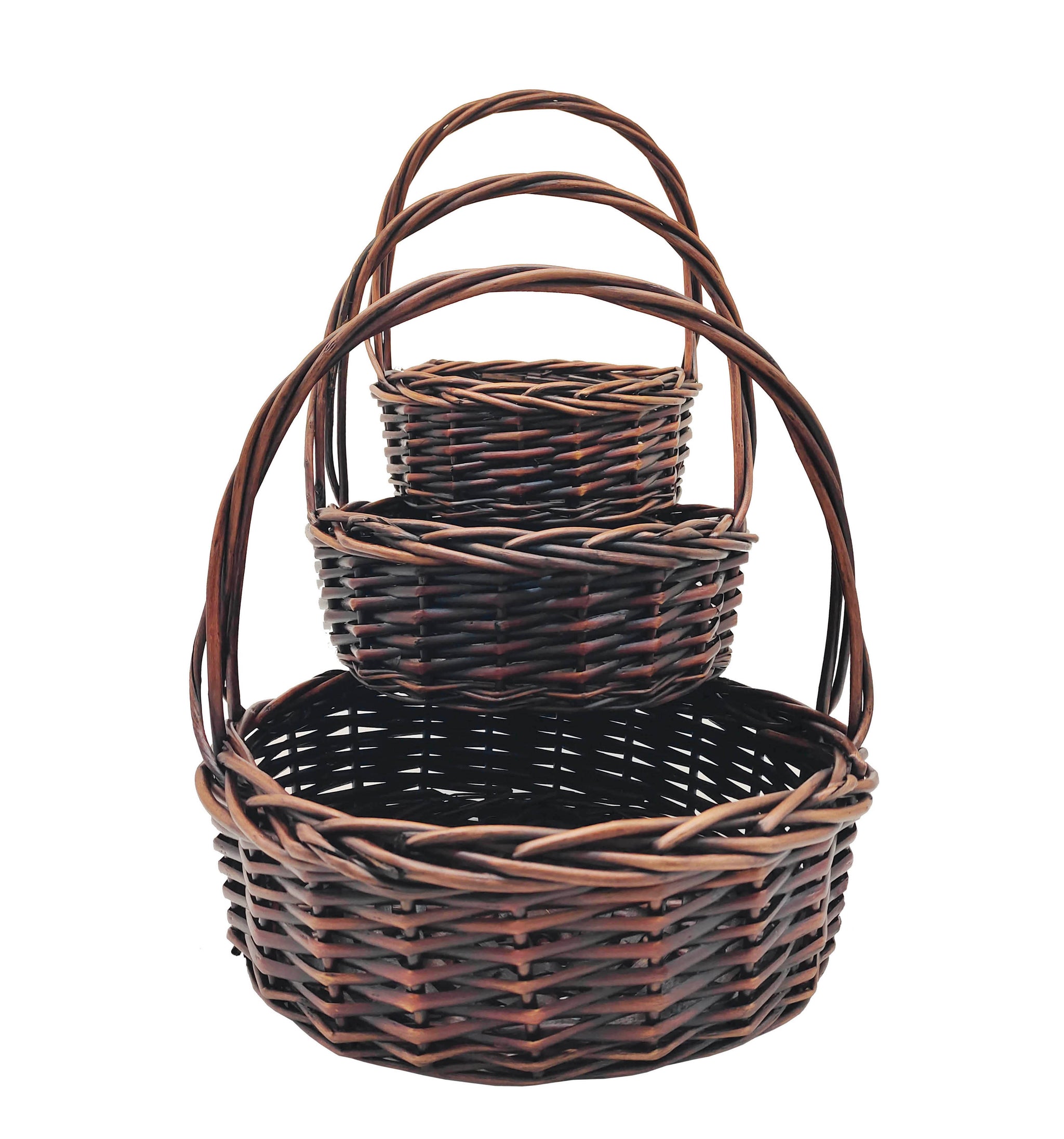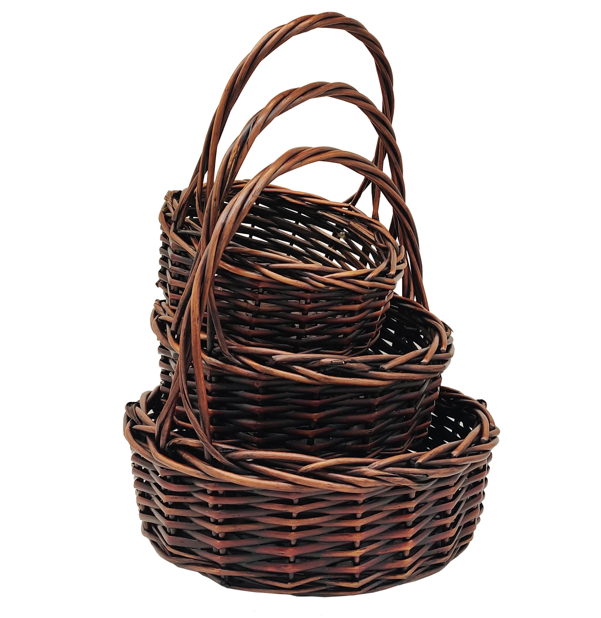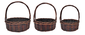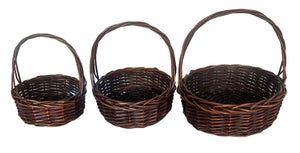 Our set of three dark brown willow baskets look like they were discovered in an enchanted forest and made by elves. By just placing your gift in a basket, it becomes all the more wholesome and appealing; all because of the effect that a basket has. Also, baskets are reusable, so they're an excellent way for your friends and family to cherish the memory of your gift, even after they've used it.